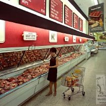 View of a woman shopping for meat at the Giant Foods Store on York Road. - 08/22/1967